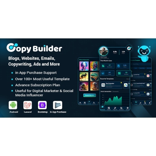 Turn AI into your competitive edge with Copy Builder – OpenAI ChatGPT AI Writing Assistant, AI Image Generator & Content Creator as SaaS. Download Copy Builder now and start your own AI-powered content platform with built-in monetization features!
